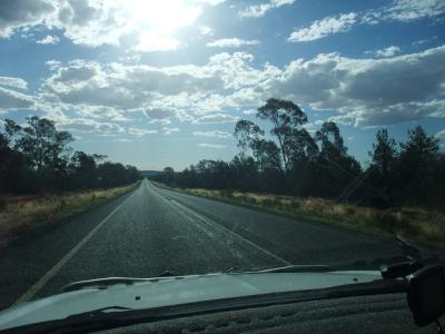 Straße ist immer noch gerade, nur die Sonne steht jetzt tiefer.